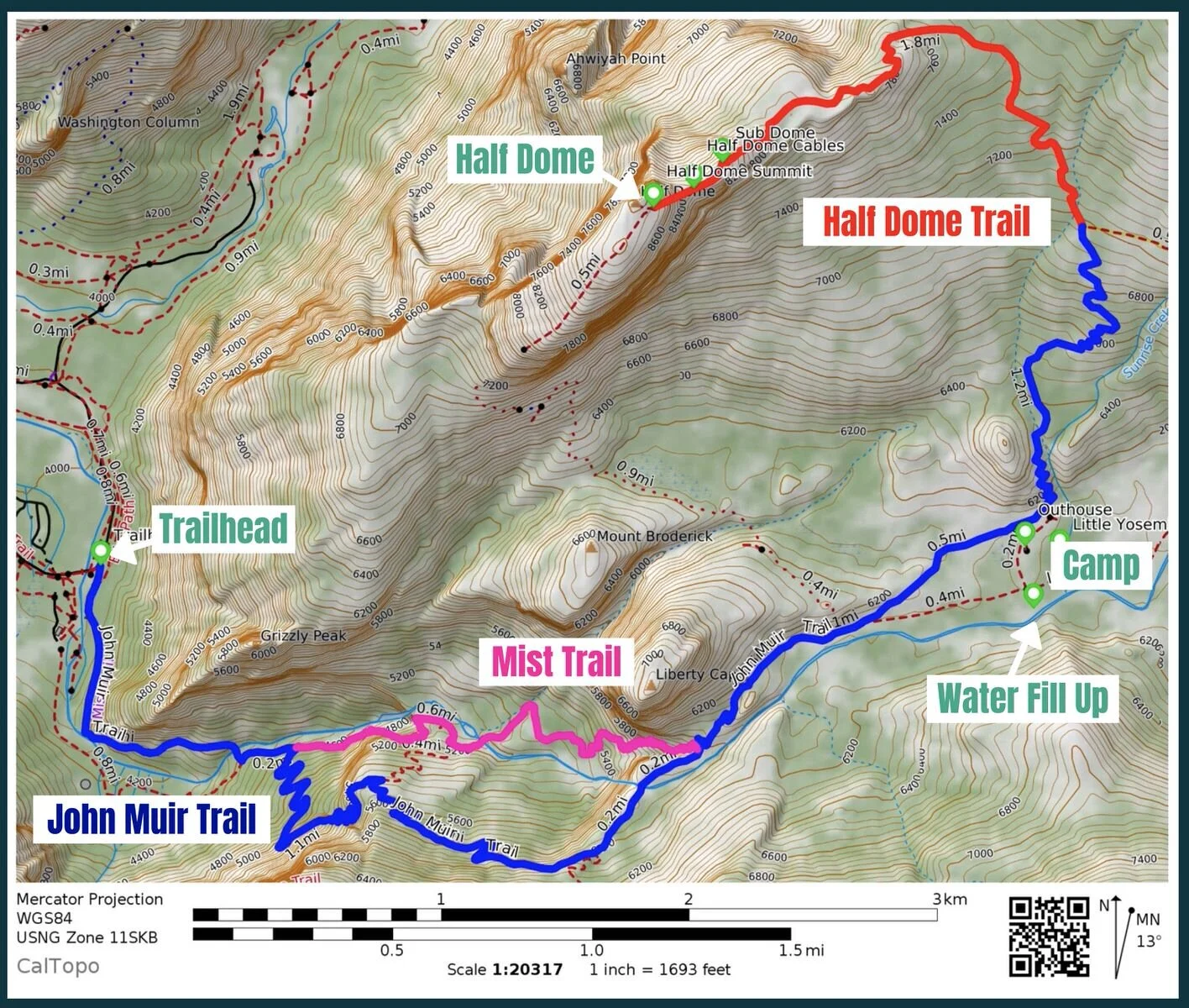 Half Dome Hike Map - Half Dome Hike Trail Guide (2021): A Step By Step Guide to Hiking Half Dome in Yosemite via the Mist Trail Image result for hike to half dome map | Natural landmarks, Hiking .